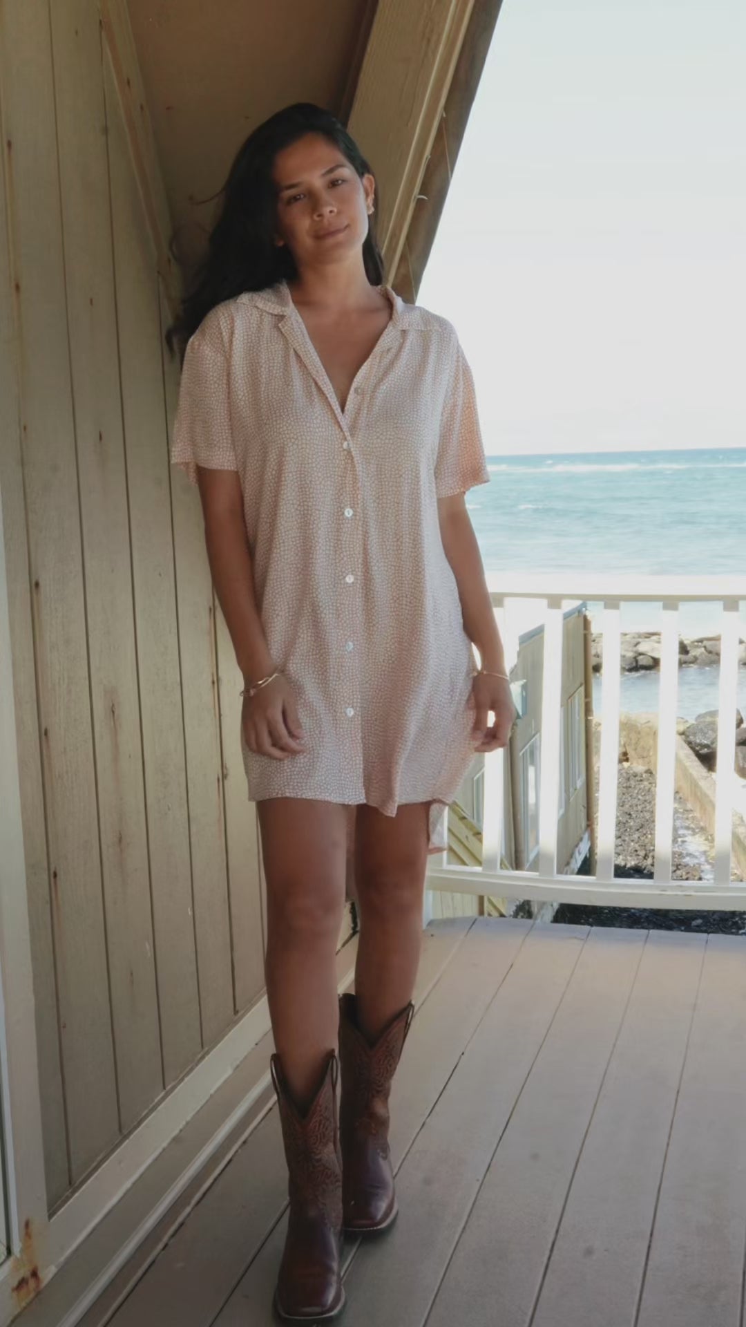A breezy staple for sun-soaked days, the Calabria Shirt is your go-to for effortless coastal style. This short sleeve, button-down beauty features a relaxed, longline fit with a slightly high-low rounded hem—perfect for throwing over your swimsuit. Lightweight, laid-back, and made for the shoreline.