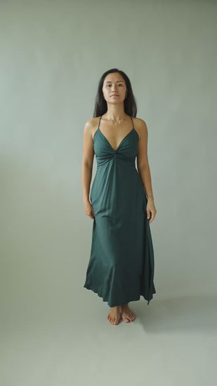 Romantic with a twist—literally. The Lorena Dress by Khush features delicate adjustable spaghetti straps, a feminine twisted front detail, and a smocked back with an adjustable tie for the perfect fit. This midi silhouette moves with you from sunshine brunches to barefoot beach nights.